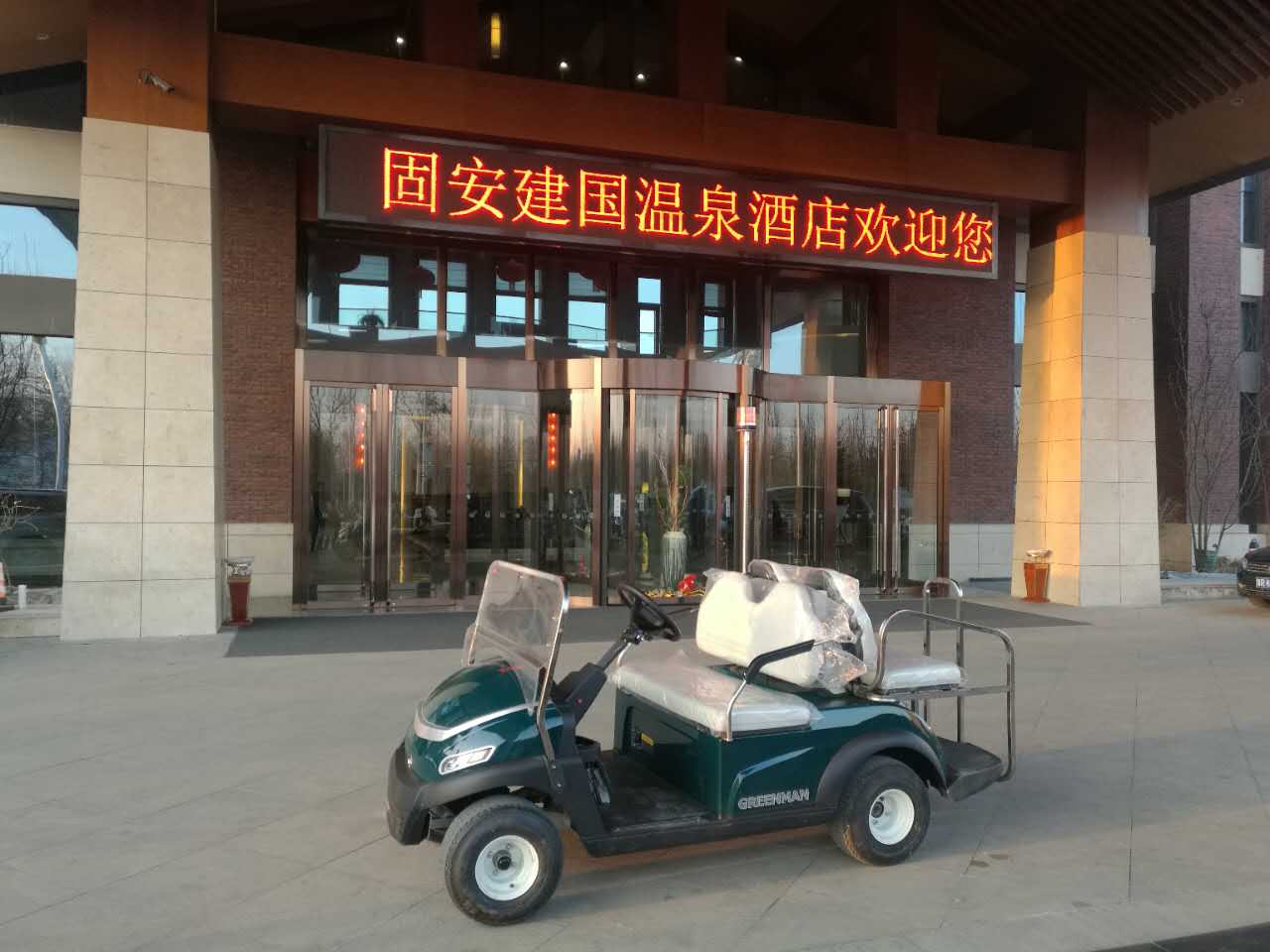 2017年3月8日在河北省廊坊市固安溫泉休閑商務(wù)產(chǎn)業(yè)園交車1臺四座電動觀光車。