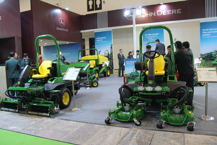 綠友展出了約翰迪爾系列剪草機(jī)、球場工作車等設(shè)備,亨特灌溉設(shè)備,GREENMAN四座系列、兩座系列球車,GEENMAN泵站以及打藥機(jī)、壓輥機(jī)等自產(chǎn)設(shè)備。