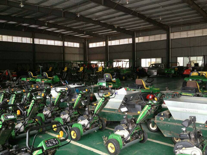 為打造頂級錦標賽事球場,從設計建造至今,覽海國際高爾夫俱樂部配備了綠友提供的草坪養(yǎng)護設備,一應俱全。高端上檔次的配置,為日后草坪的養(yǎng)護提供了堅強的保障,其中美國迪爾公司的8000E混合動力坐騎式五聯(lián)球道剪草機就成了其中的一大“功臣”。18英寸QA5刀組,兼?zhèn)湎冗M的油電混合技術,起早摸黑,征服了連綿起伏的球道,贏得了俱樂部草坪總監(jiān)及其團隊的一致肯定。馳騁美巡,盼其再續(xù)輝煌征程。