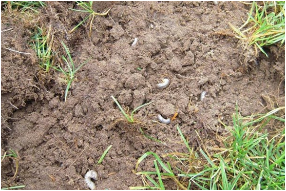 如果七月底正常澆水,已經(jīng)為草坪補(bǔ)充了足夠的水分,但仍然出現(xiàn)了這種情況,同時(shí)向上抓取枯黃草皮,很容易即可將其抓起,根系缺失,土壤表面可以發(fā)現(xiàn)白白的“小肉蟲(chóng)子”,這個(gè)就是我們今天要聊的蠐螬。