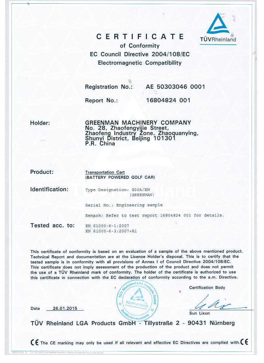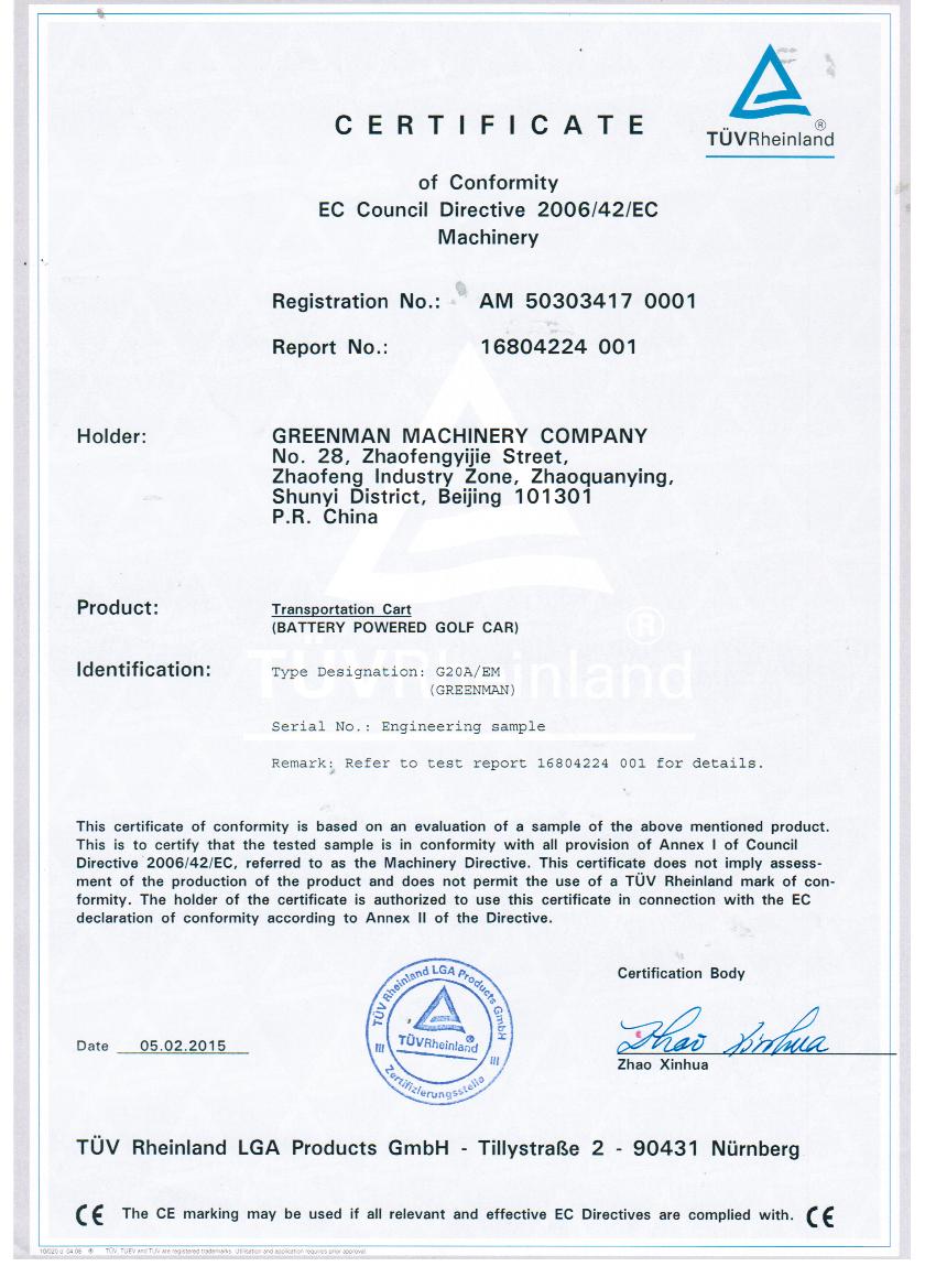 綠友集團自主研發(fā)的GREENMAN兩座電瓶車golf car通過了CE認證。