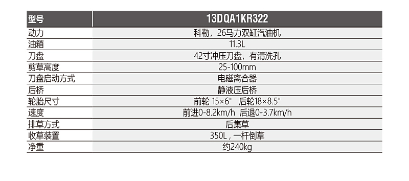 3. 速度: 前進0-8.2km/h,后退0-3.7km/h