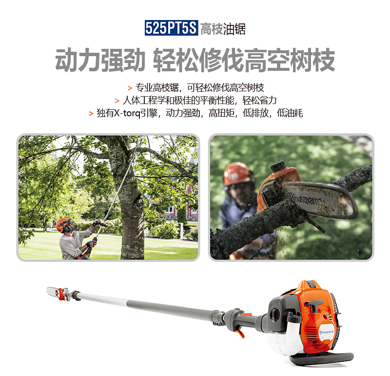 為專業(yè)用戶而設(shè)計,富世華525PT5S配備延長桿,可以清除高空樹枝,人體工程學和平衡性助您以輕松的方式完成任務(wù)。操作簡便,X-Torq?引擎保證強勁動力,高扭矩,低排放和低油耗。