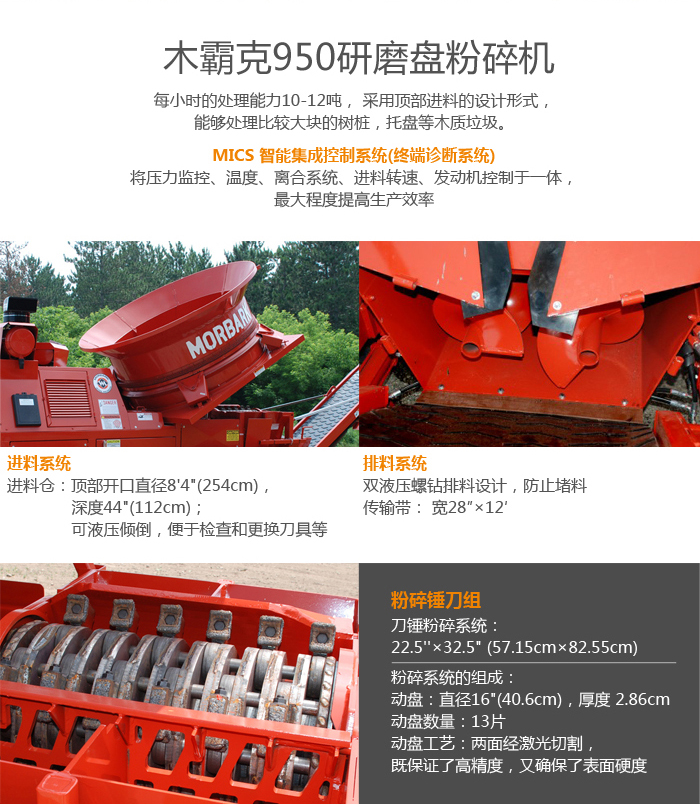 950立式粉碎機(jī),每小時(shí)的處理能力10-12噸, 采用頂部進(jìn)料的設(shè)計(jì)形式,能夠處理比較大塊的樹(shù)樁,托盤等木質(zhì)垃圾。