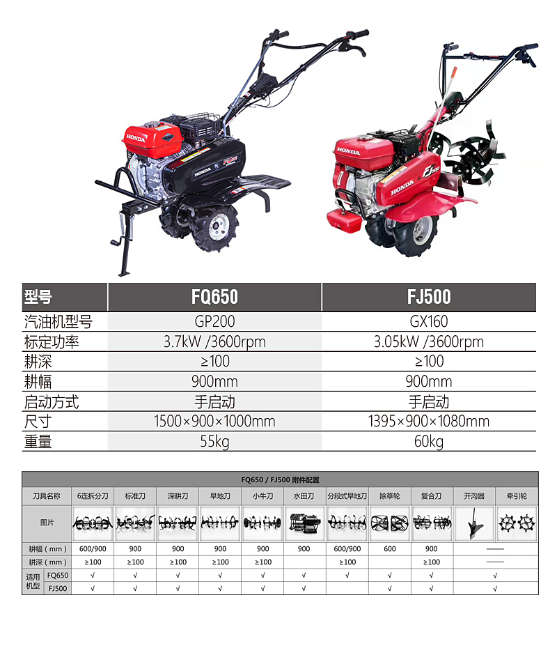 根據(jù)土壤硬度和耕作需要可選擇標準刀、深耕刀、除草輪、復(fù)合刀、開溝器、旱地刀等不同刀具。